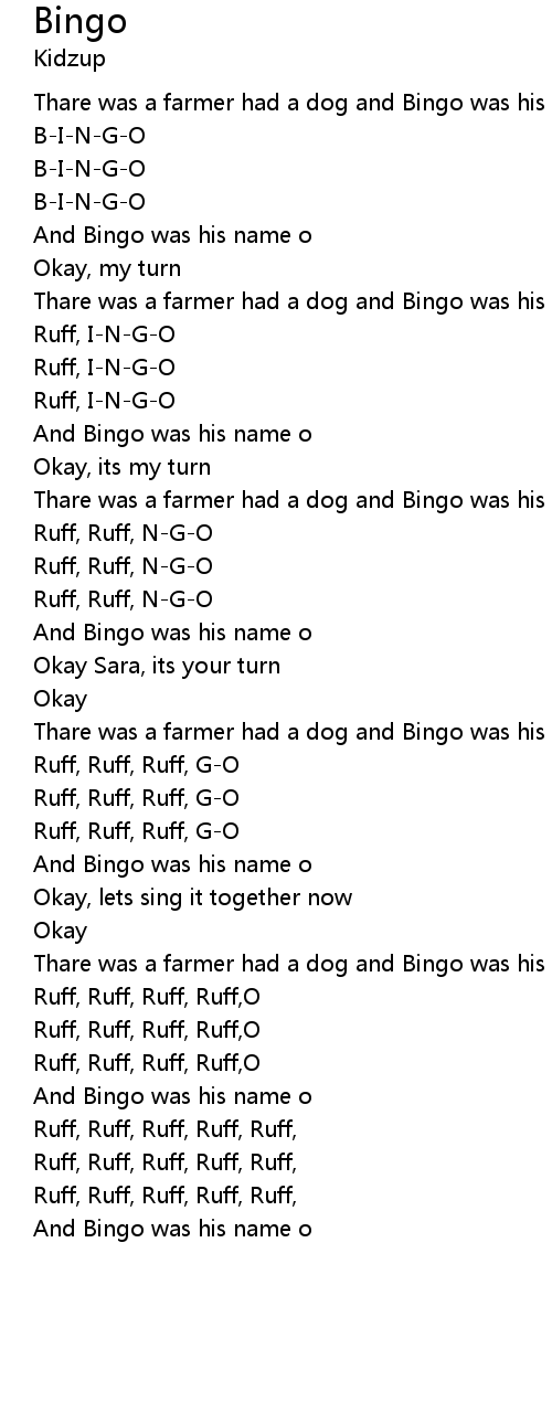 Thare was a farmer had a dog and Bingo was his name o |