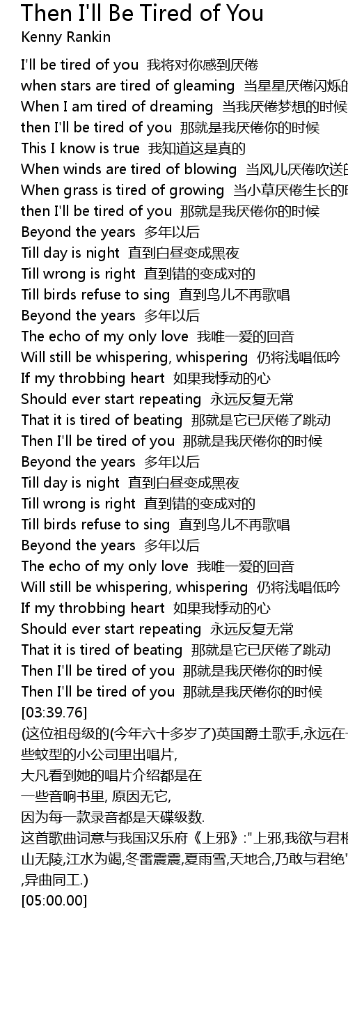 | [03:20.28] | Then I'll be tired of you 那就是我厌倦你的时候 |
