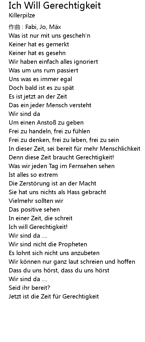 | Denn diese Zeit braucht Gerechtigkeit! | |