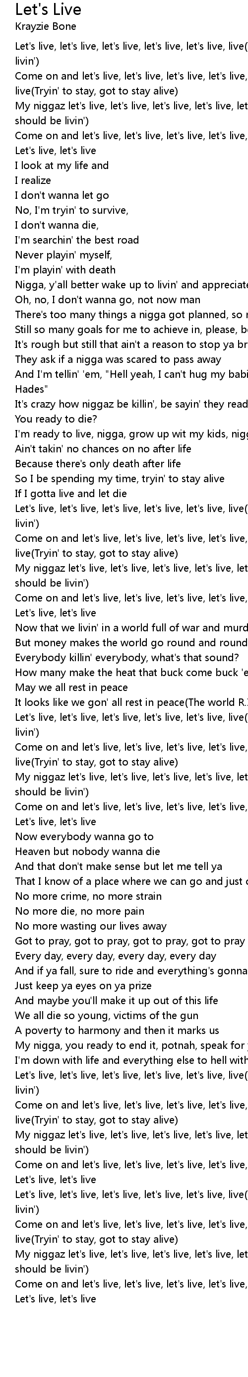 My niggaz let's live, let's live, let's live, let's live, let's live, live(You should be livin') |