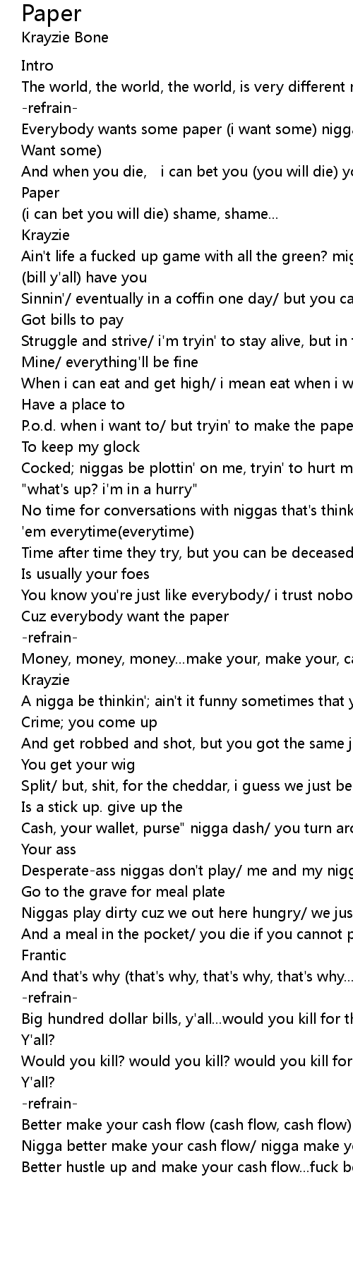 | Everybody wants some paper (i want some) niggas fightin' over paper (i know you | |