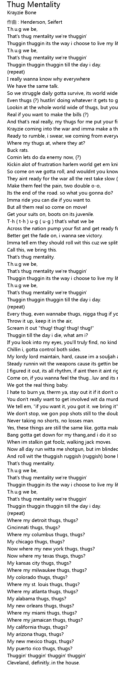 | Lookin at the whole world wide of thugs, but you got to keep it | |