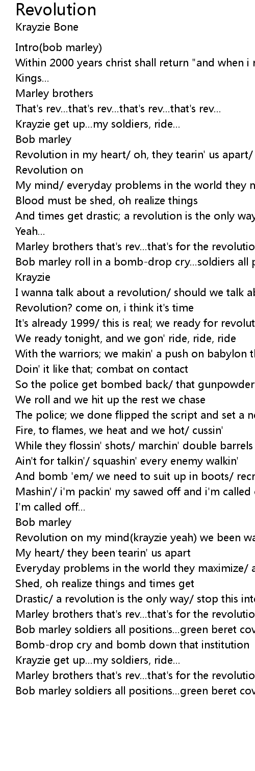 Revolution on my mind(krayzie yeah) we been wastin' so much time/ revolution in |
