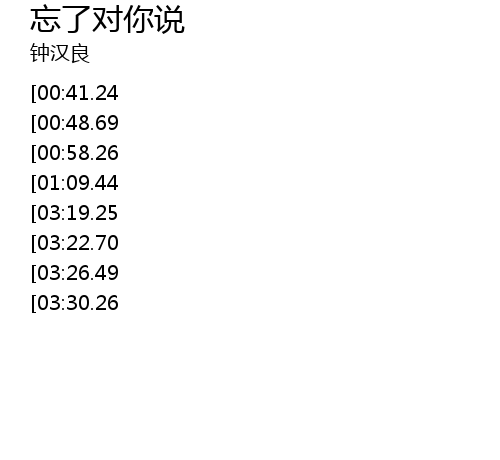 | [03:34.43][03:19.25][02:41.11][01:19.23] | Baby Baby Baby wang le dui ni shuo |