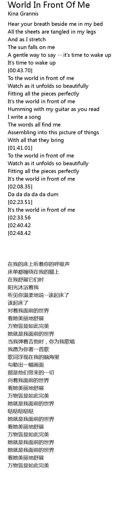 To the world in front of me |