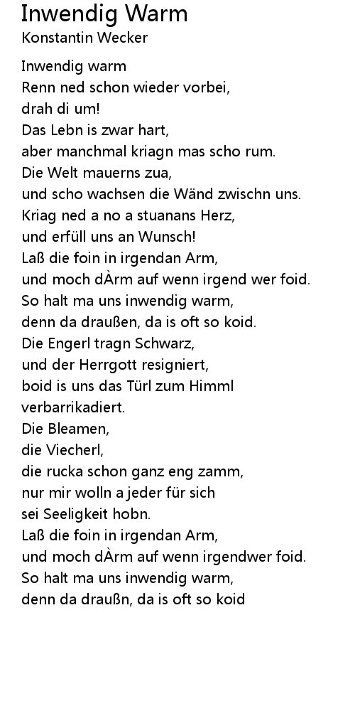 | und scho wachsen die W nd zwischn uns. | |