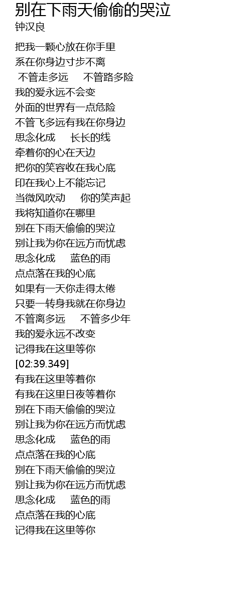 | [01:48.120] | 别在下雨天偷偷的哭泣 |