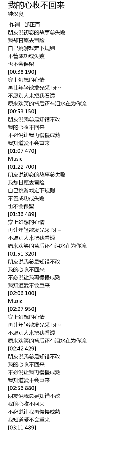 | [03:01.100] | wǒ de xīn shōu bù huí lái |