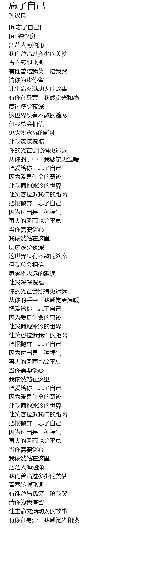 | [01:17.153] | bǎ ài gěi nǐ wàng le zì jǐ |