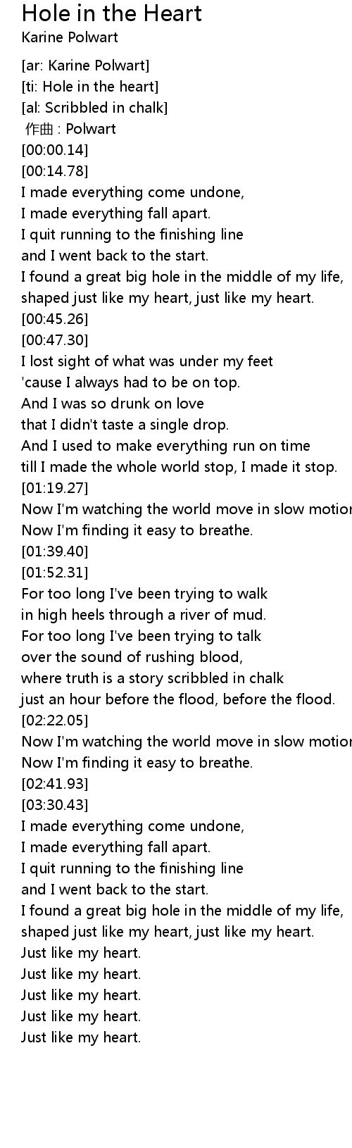 | [03:47.32] | I found a great big hole in the middle of my life, |