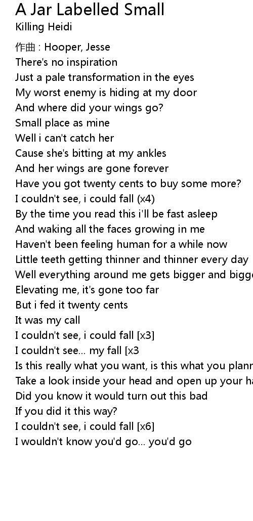 | Song | A Jar Labelled Small |