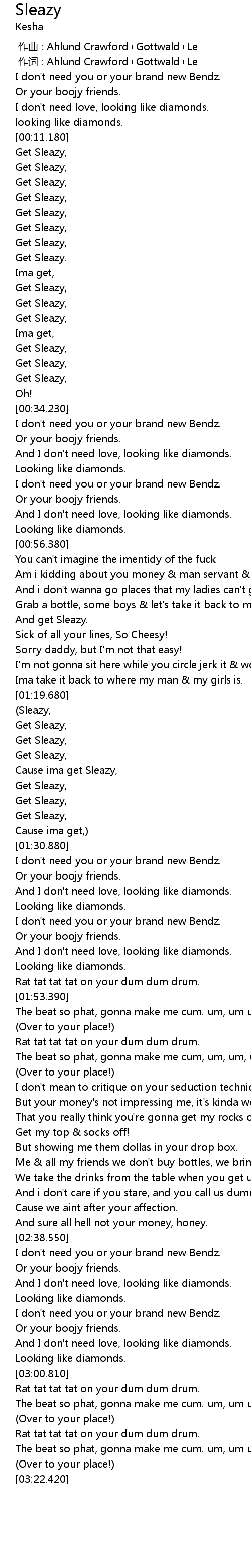 | [03:15.210] | The beat so phat, gonna make me cum. um, um um, um. |