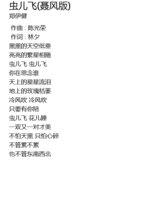 | [00:19.520] | 虫儿飞 虫儿飞 |