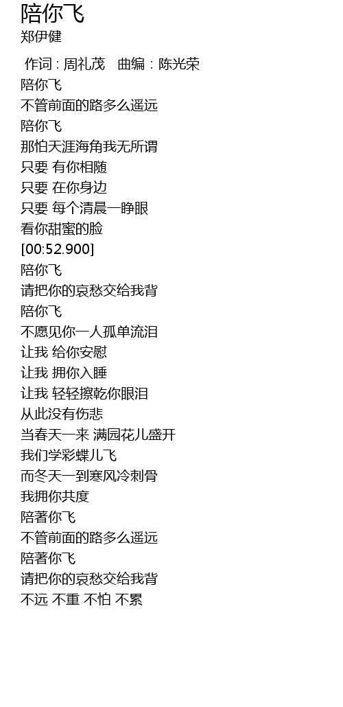 | [00:30.000] | zhǐ yào yǒu nǐ xiāng suí |