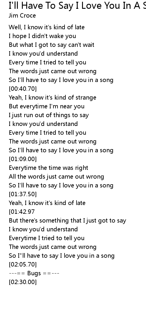 | [02:01.00] | So I"ll have to say I love you in a song |
