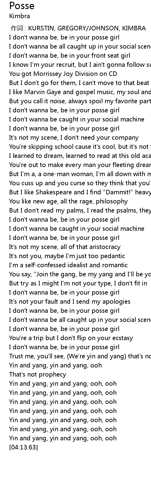 | [03:12.54] | I don' t wanna be, be in your posse girl |