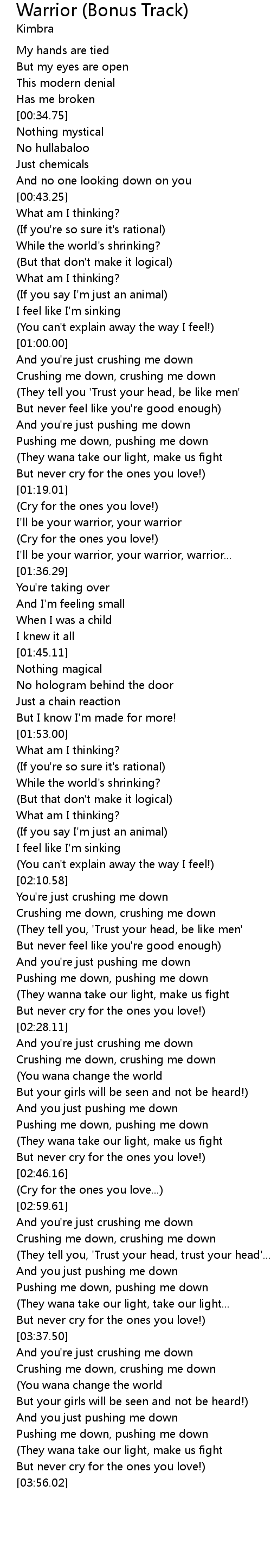 | [01:31.19] | I'll be your warrior, your warrior, warrior... |