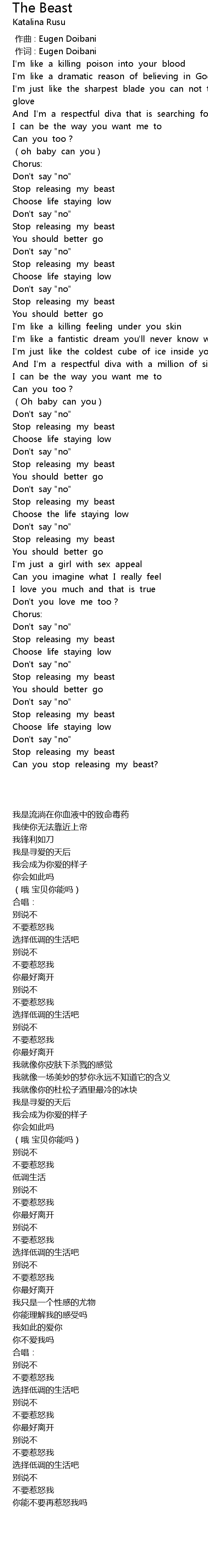 | [02:56.14] | Can you stop releasing my beast? |