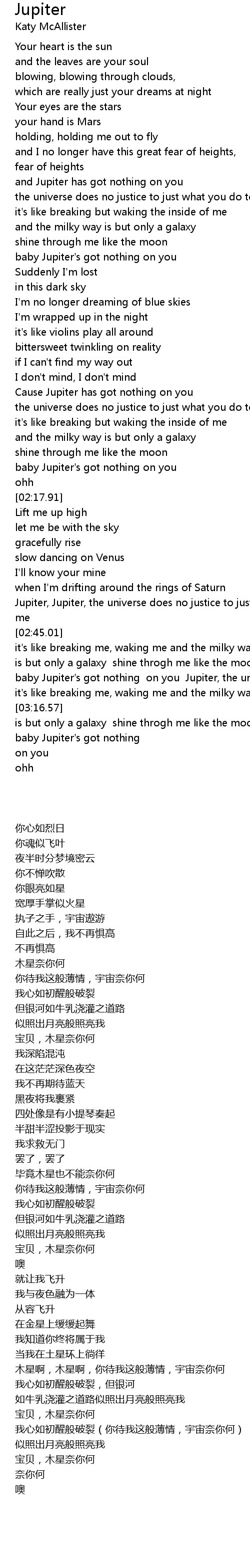 [02:58.64] baby Jupiter's got nothing on you Jupiter, the universe does