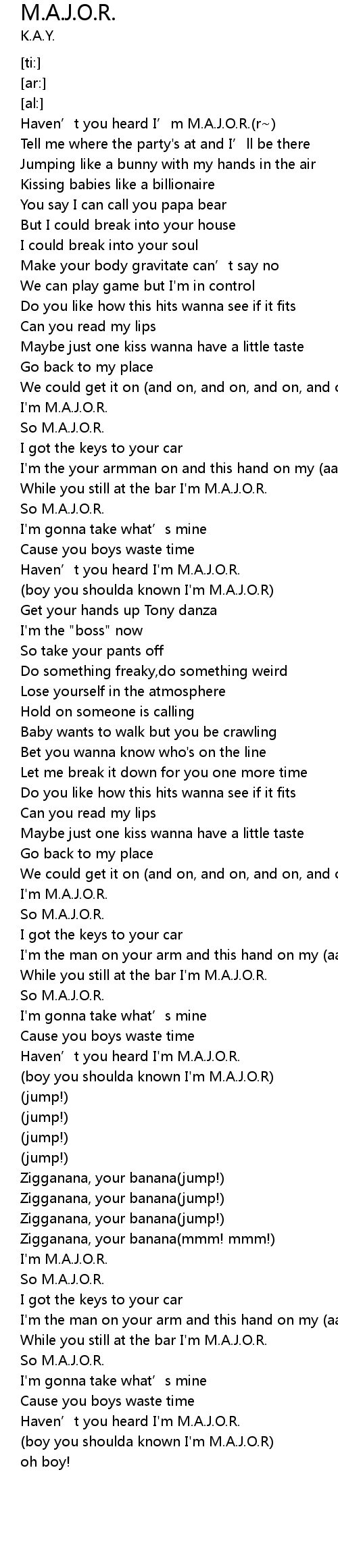 | [00:53.27] | While you still at the bar I'm M.A.J.O.R. |
