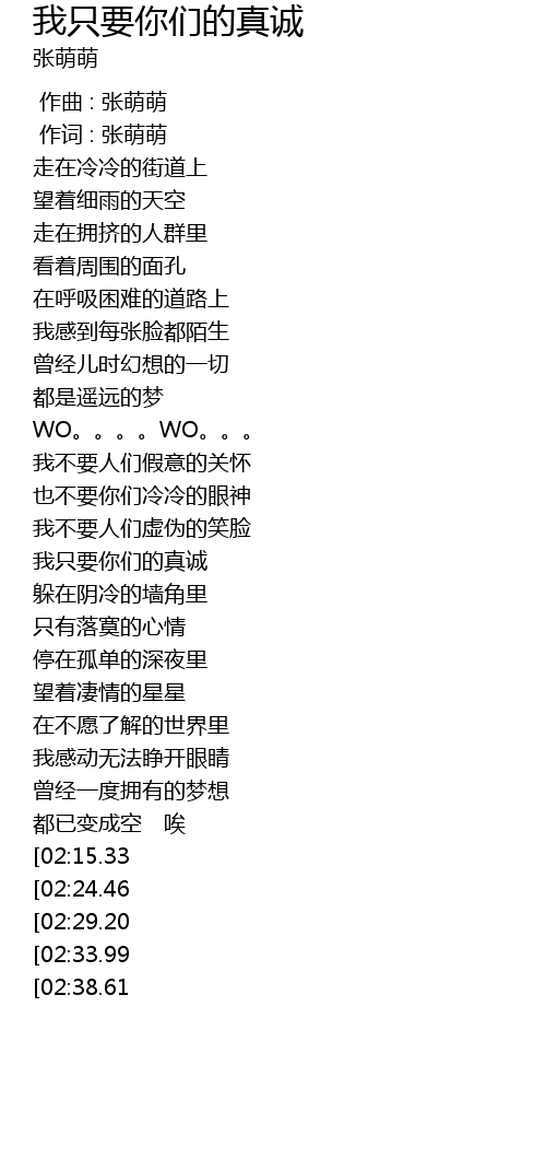 | [03:25.83][02:38.61] | 我只要你们的真诚 |