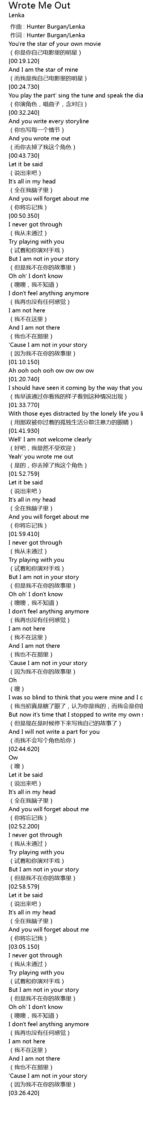 | [00:37.970] | nǐ yě xiě měi yí gè qíng jié |