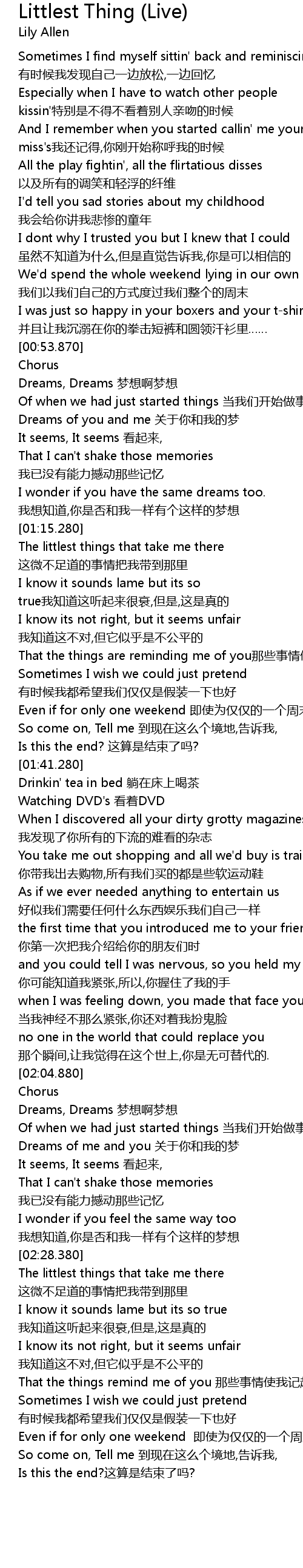 | [01:17.650] | The littlest things that take me there zhe wei bu zu dao de shi qing ba wo dai dao na li |
