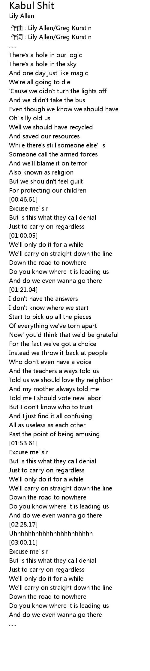 | [00:01.00] | zuò cí : Lily Allen Greg Kurstin |