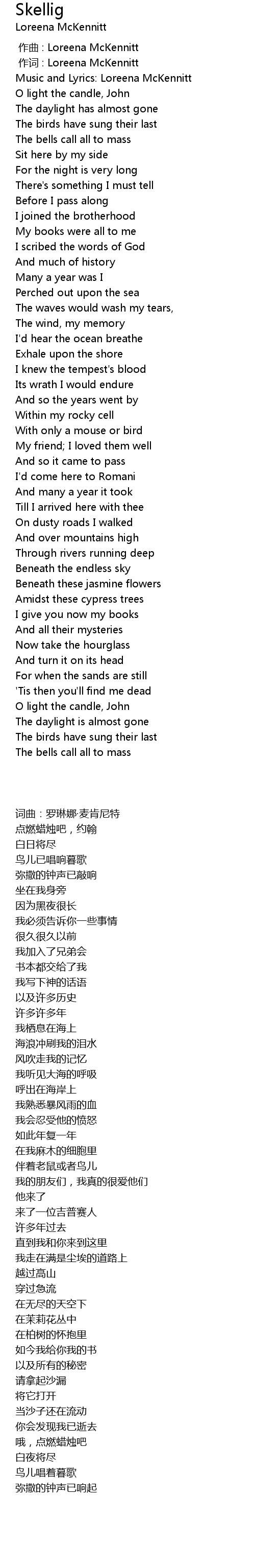 | [00:04.39] | Music and Lyrics: Loreena McKennitt |