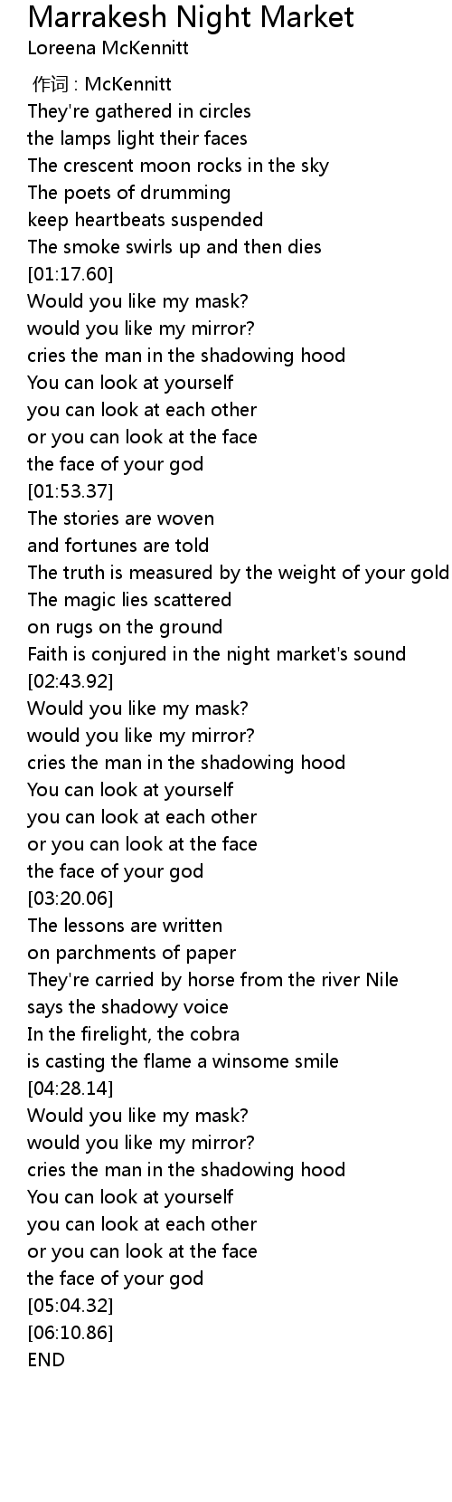 | [00:00.00] | 作词 : McKennitt |