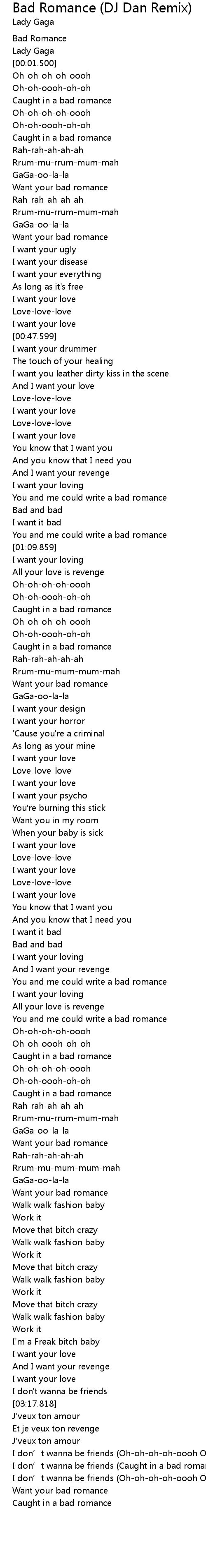 | [02:51.728] | Want your bad romance |