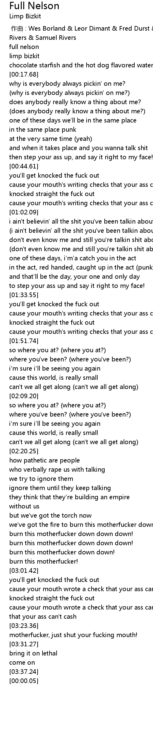| [00:00.00] | 作曲 : Wes Borland & Leor Dimant & Fred Durst & John Otto & Sam Rivers & Samuel Rivers |