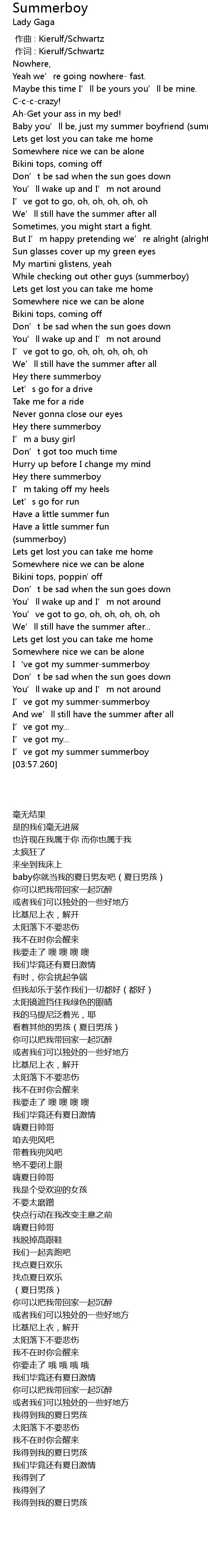 | [03:28.530] | I' ve got my summersummerboy |