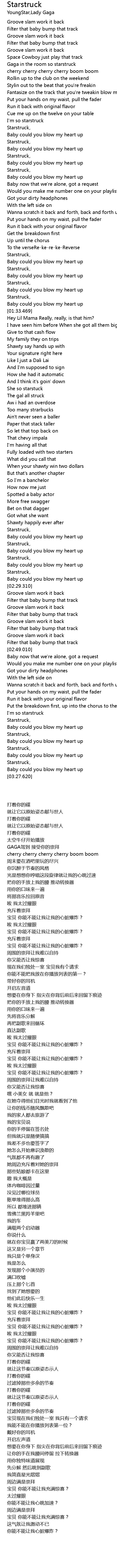 | [00:13.940] | Gaga in the room so starstruck |