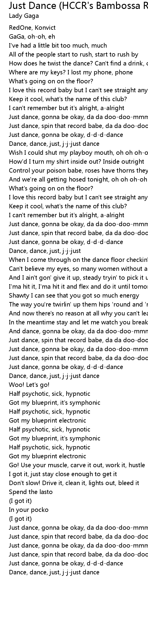 Just dance, gonna be okay, da da doo-doo-mmm |