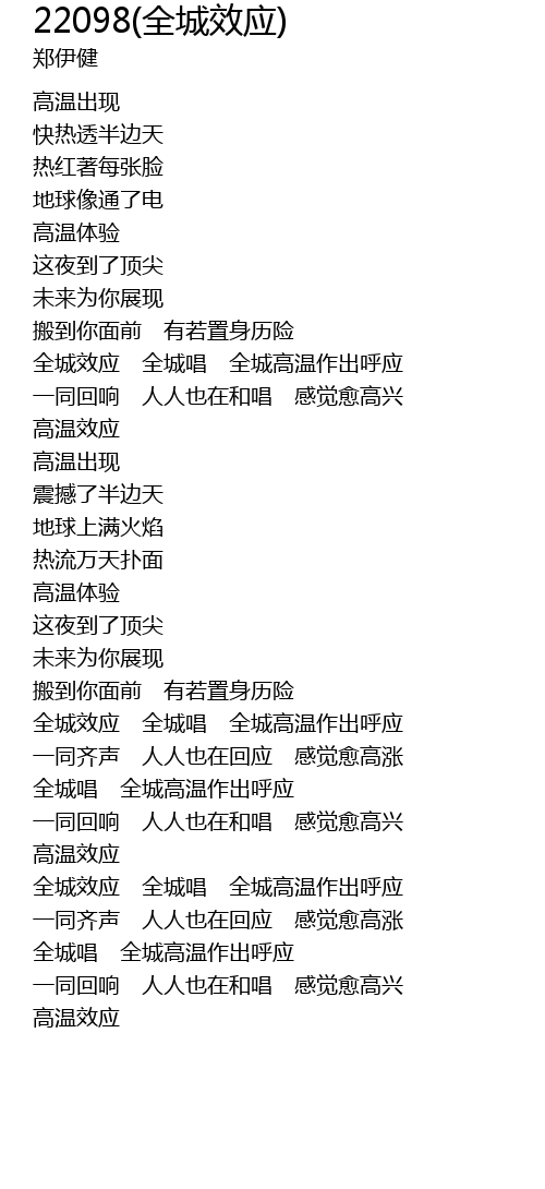 | [01:32.56] | 全城效应 全城唱 全城高温作出呼应 |