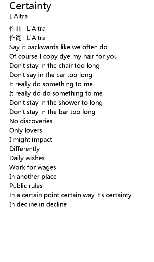 | Song | Certainty |