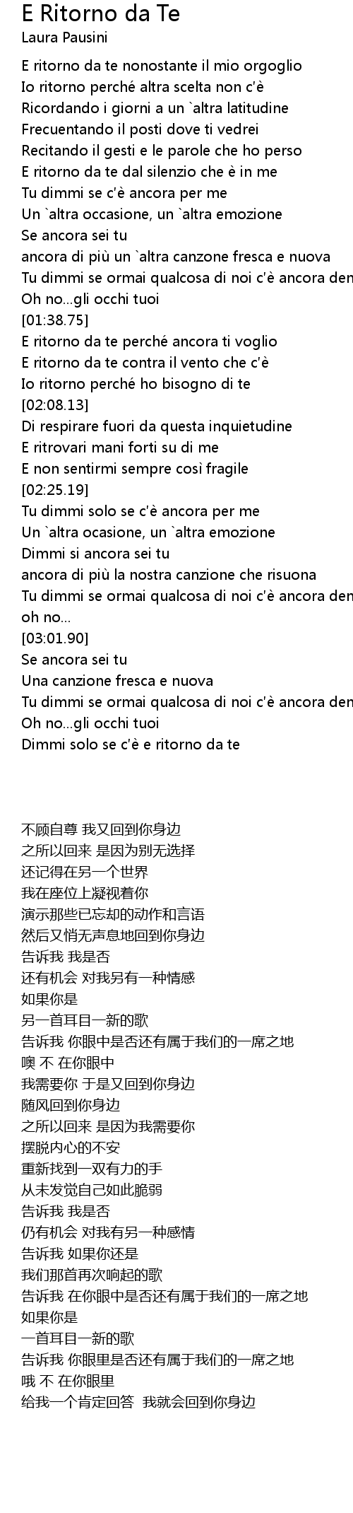 | [01:51.20] | E ritorno da te perche ancora ti voglio |