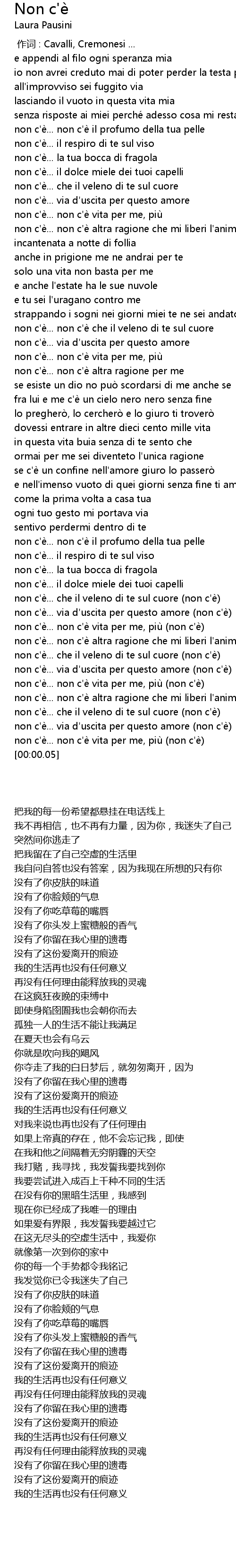 | [03:51.34] | non c'e... non c'e vita per me, piu non c'e |