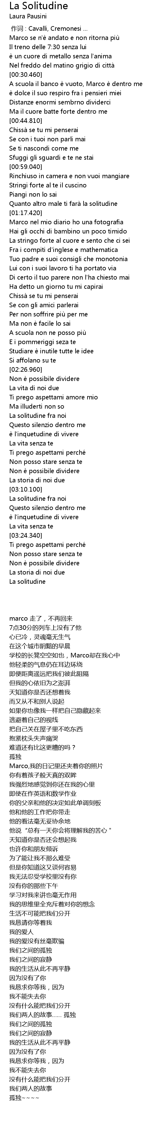 | [00:31.160] | A scuola il banco è vuoto, Marco è dentro me |