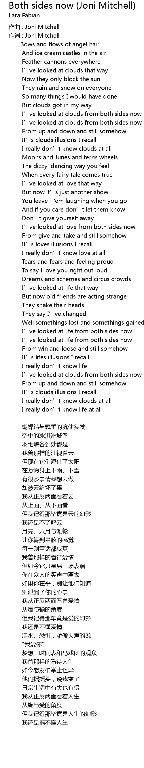 | I' ve looked at life from both sides now | |