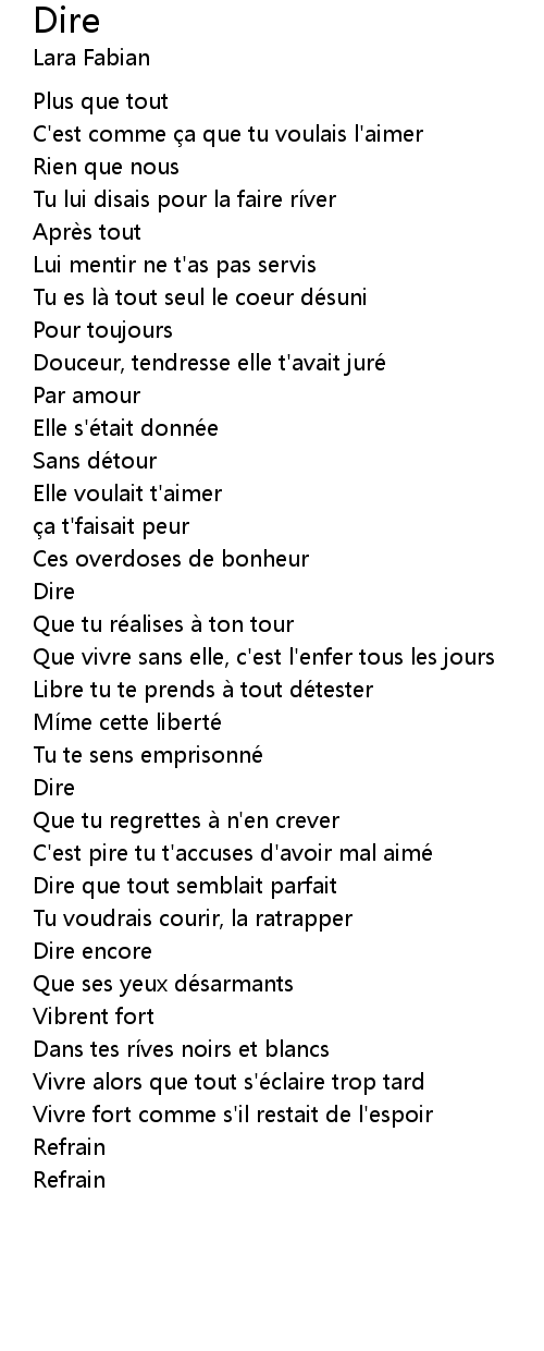 | Que vivre sans elle, c'est l'enfer tous les jours | |