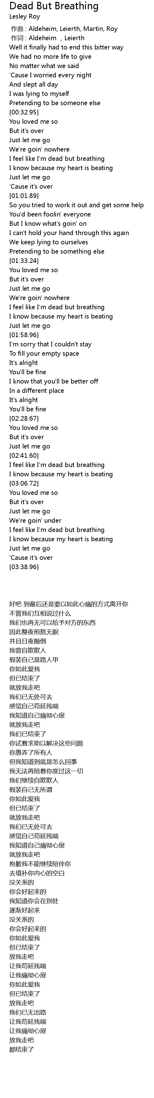 | [03:22.11] | I feel like I' m dead but breathing |