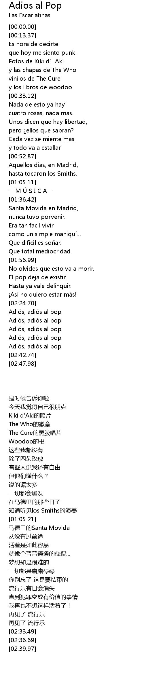 | [02:33.49] | Adiós, adiós al pop. |