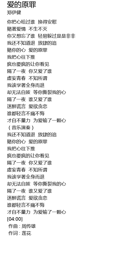 | [00:53] | 赌你的心 爱的原罪 |
