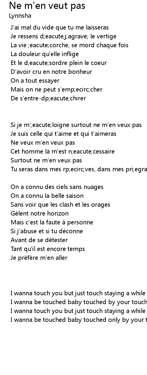 | Si je m';eacute;loigne surtout ne m'en veux pas | |