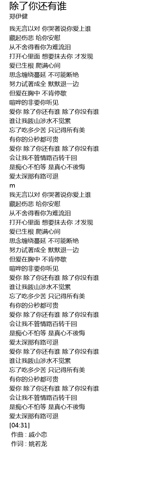 | [03:20] | 爱你 除了你还有谁 除了你没有谁 |