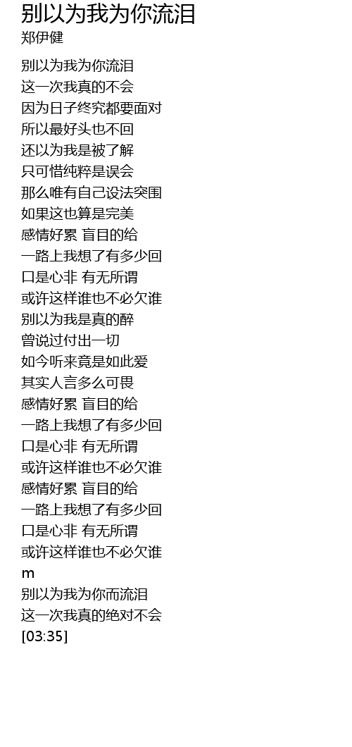 | [03:13] | bié yǐ wéi wǒ wèi nǐ ér liú lèi |
