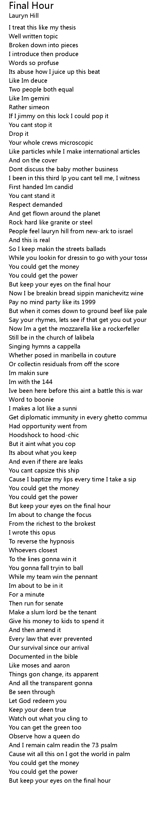 Final Hour Lyrics