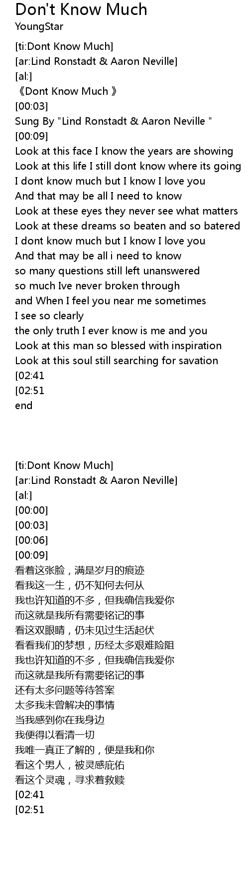 | [00:00] | 《Dont Know Much 》 |